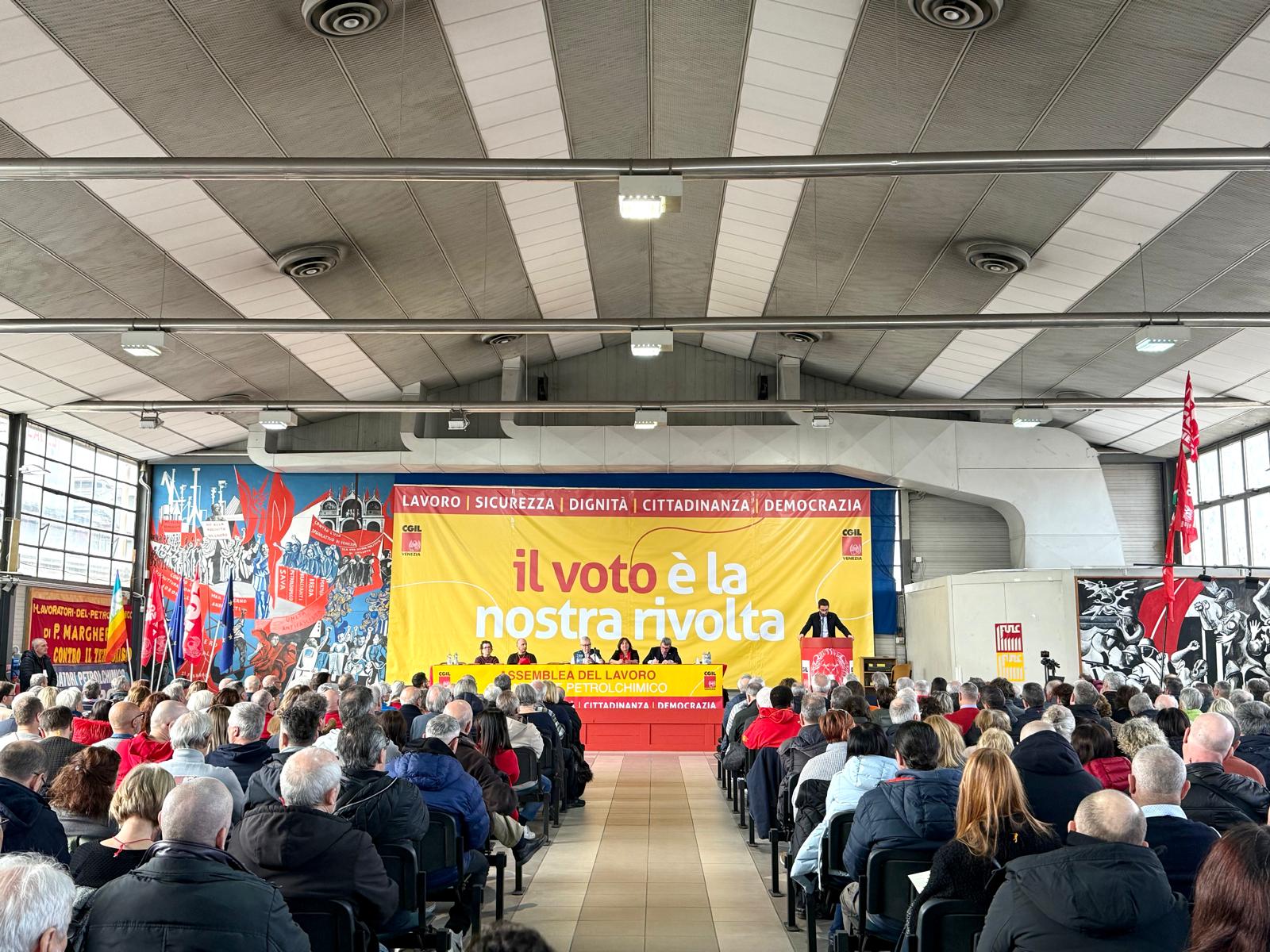 Grande partecipazione all'assemblea del lavoro organizzata dalla CGIL Venezia per il lancio della campagna referendaria.