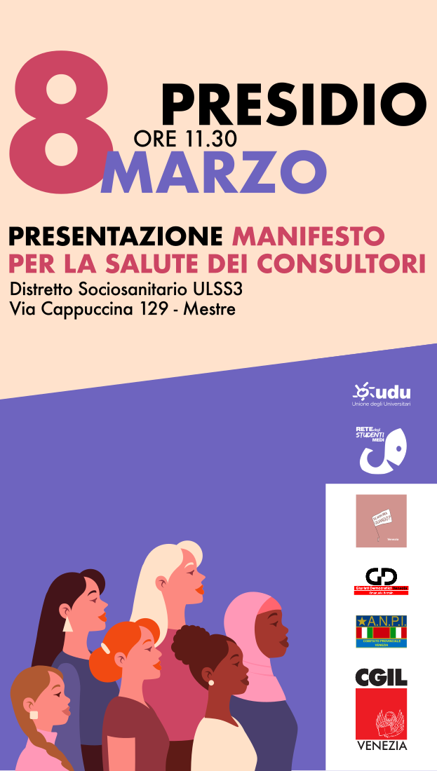 L’8 marzo la CGIL Venezia sarà di fronte al Distretto Sociosanitario ULSS3 di via Cappuccina.
