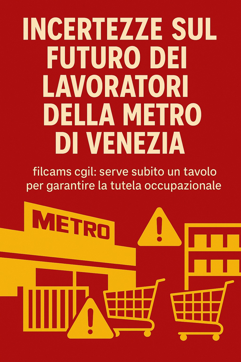 La Filcams-CGIL di Venezia insieme alle RSU esprime profonda preoccupazione per il futuro dei 42 lavoratori della Metro di Venezia, in particolare alla luce della prossima scadenza, tra sei mesi, del contratto di affitto.