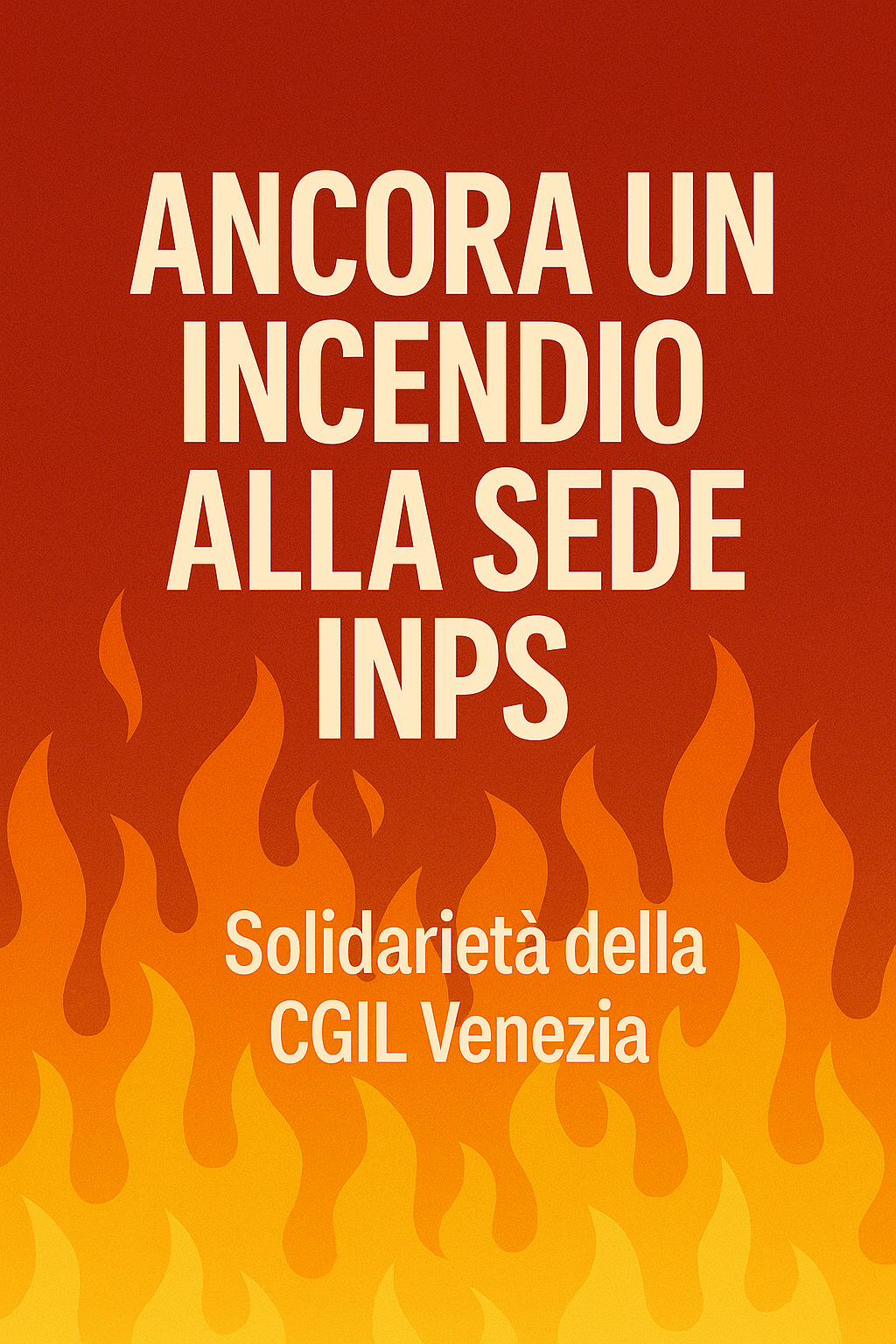 Per la seconda volta in meno di un anno un principio di incendio colpisce la sede dell’INPS di Venezia. Al Direttore Vincenzo Petrosino e alle lavoratrici e lavoratori dell’Istituto, esprimiamo solidarietà come Camera del Lavoro di Venezia.